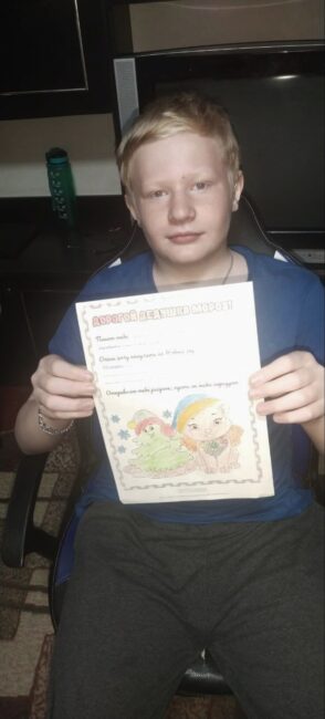 Ciao, Nonno Gelo. Mi chiamo Il’ja S., ho 12 anni. Vivo nella città di Gorlovka. Sono sorso dalla nascita, non riesco a sentire bene. Ho altri due fratelli e mia madre. Siamo una famiglia numerosa. Indosso apparecchi acustici. Devo comprare delle batterie per le protesi. Voglio anche che la guerra finisca subito. Vi preghiamo di mandarci qualsiasi regalo