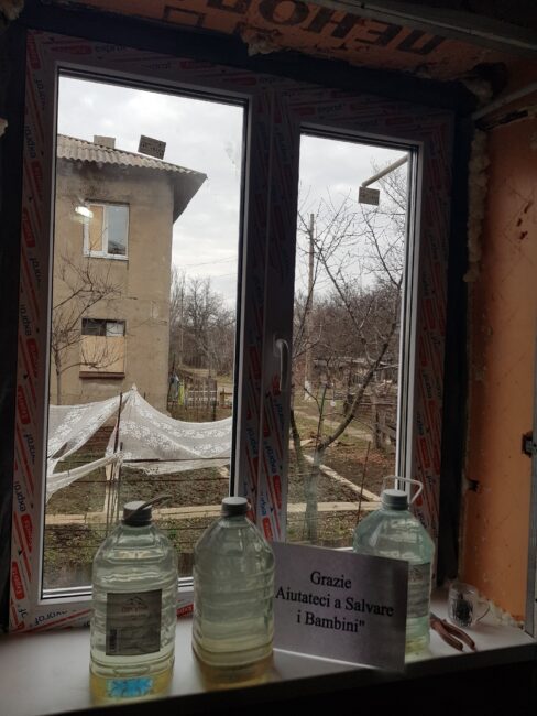 Da tempo Elena D. la nostra coordinatrice di Minera Gagarin ci chiedeva la possibilità di avere due finestre nuove per sostituire quelle distrutte dai bombardamenti di mesi fa
